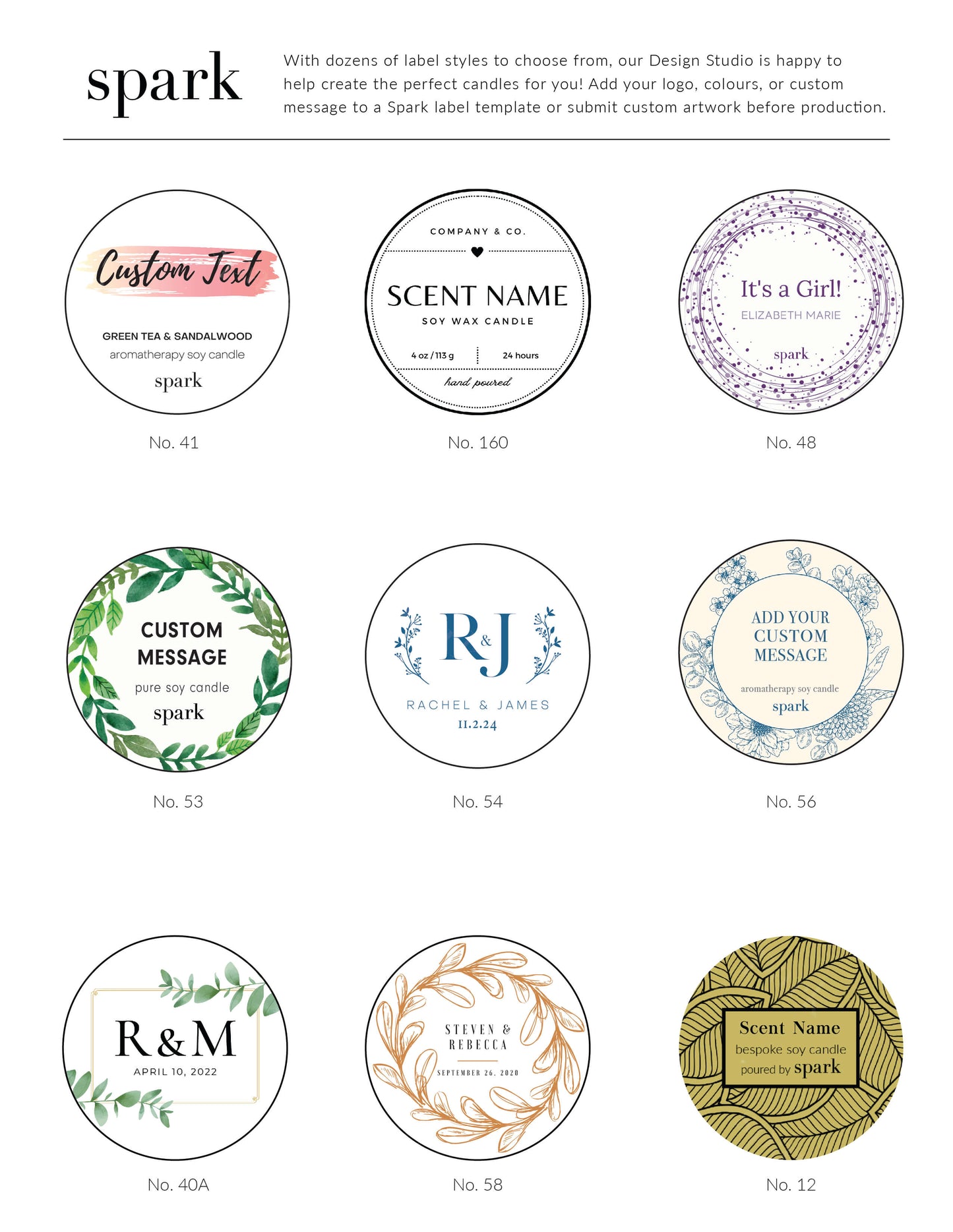 Choose from dozens of our candle label style templates, or add your custom artwork and designs before production.