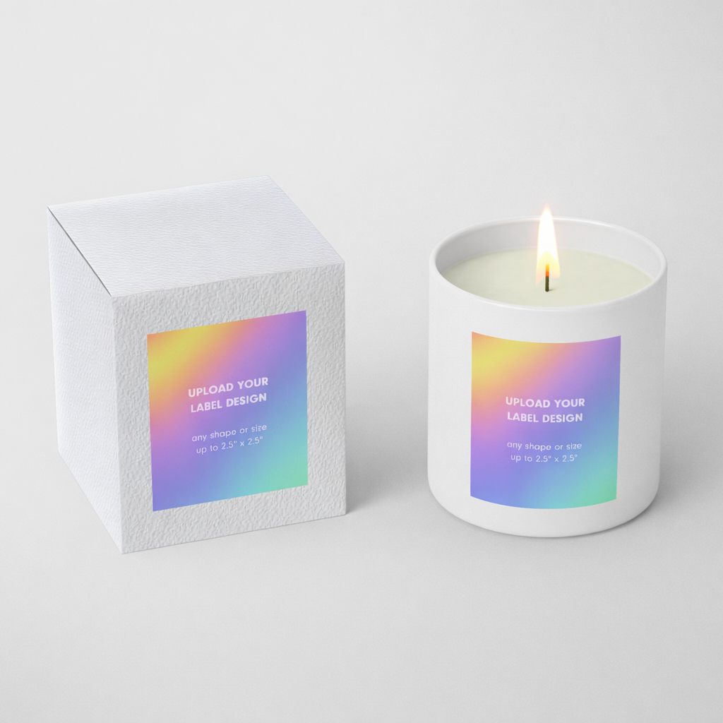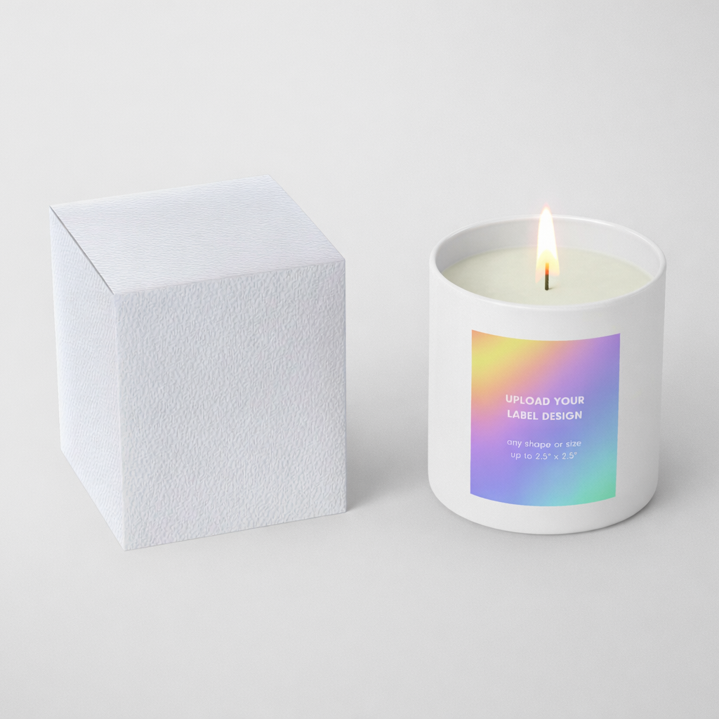 Make a bold impression with our 10oz matte white glass candle featuring a vibrant, full-color custom label and premium gift-ready packaging. Hand-poured by expert chandlers in North America using eco-friendly soy wax and clean fragrances.